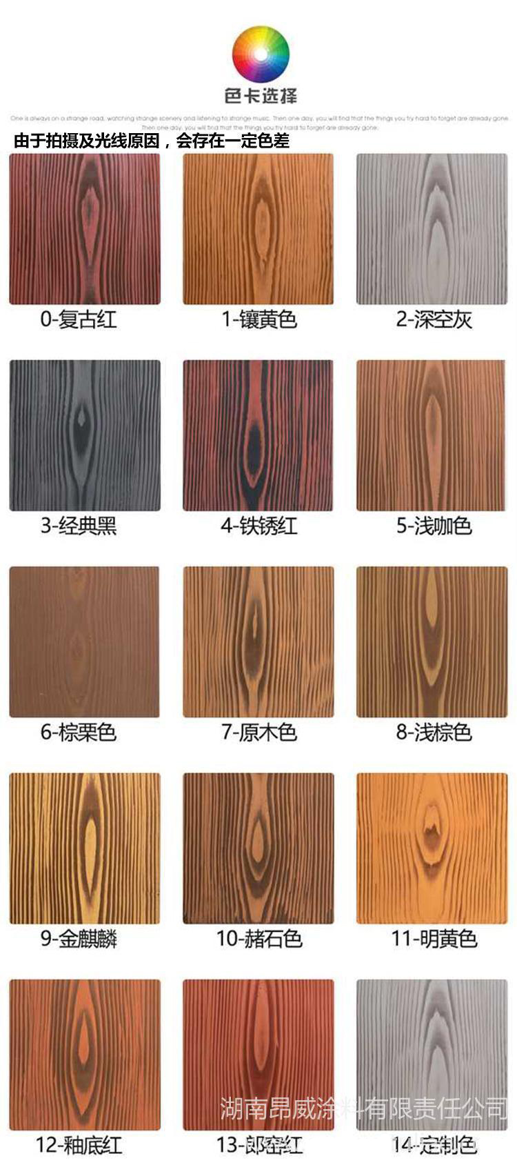 4、可呈現(xiàn)各種木紋狀藝術圖案,圖案隨意、細膩、無接縫、不起皮、不開裂,底色和面色可以自由搭配,圖案可任意創(chuàng)作。古色古香,壽命長;