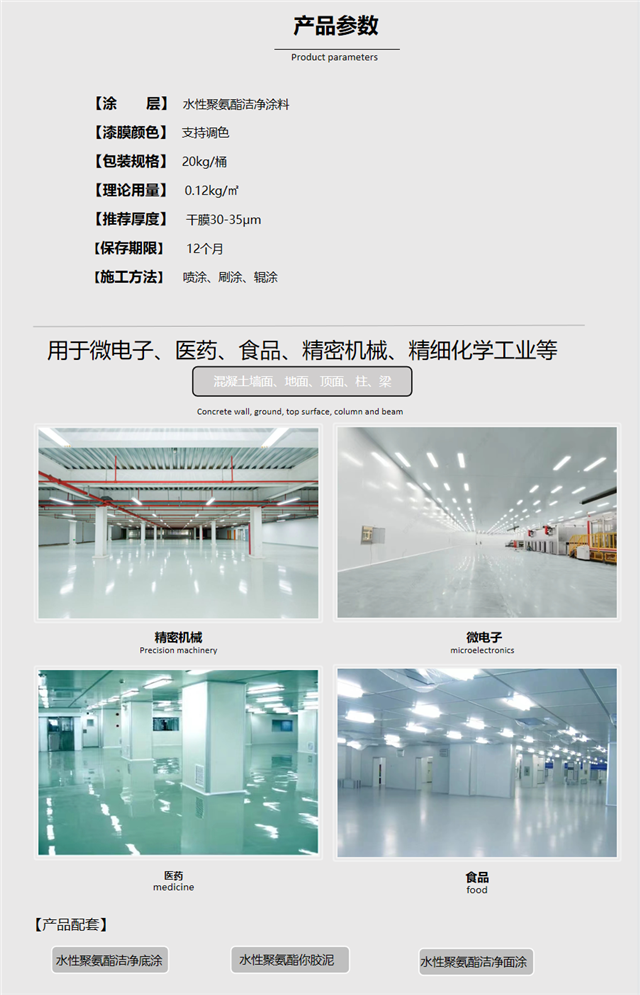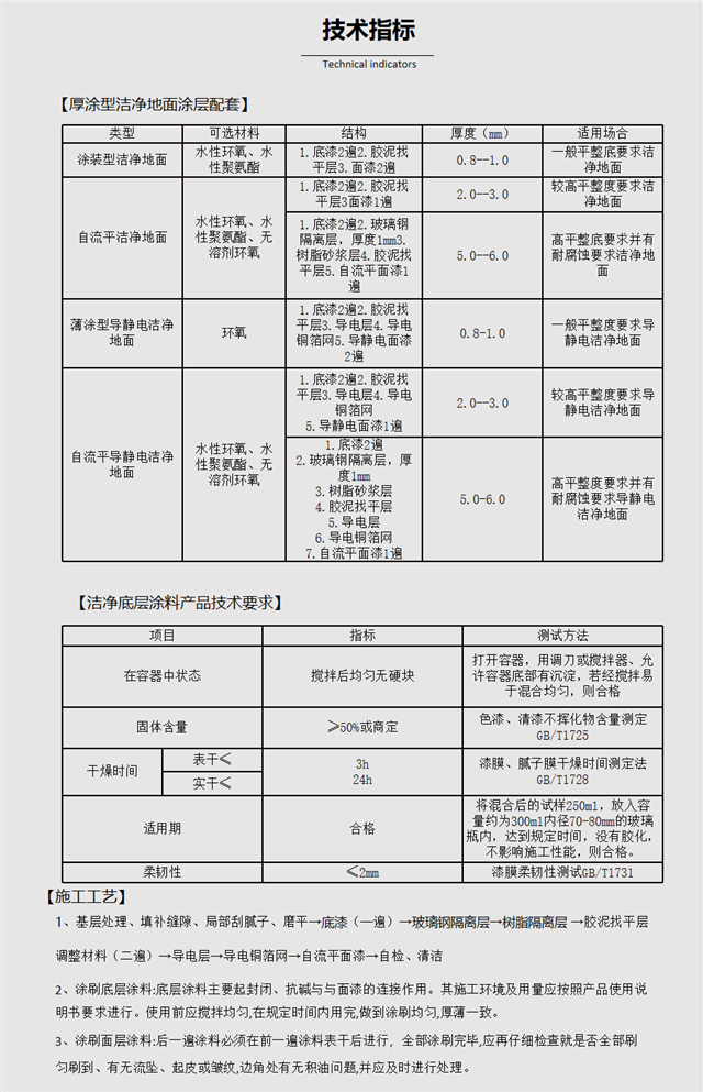 水泥砂漿、混凝土、木材等基層宜選用環(huán)保型水性聚氨酯潔凈涂料、水性環(huán)氧潔凈涂料、無溶劑環(huán)氧潔凈涂料
