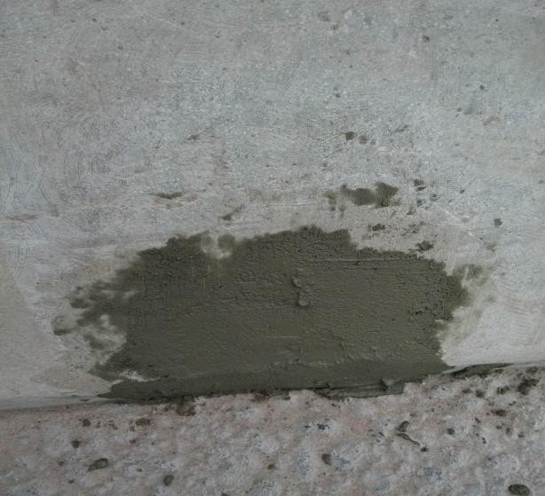 第二道工序:將局部破損較嚴重區域采用聚合物砂漿修補平整。先在大的缺陷、裂縫處涂上均勻、足夠的底涂,等其干燥之后用聚合物砂漿將其修補完整。